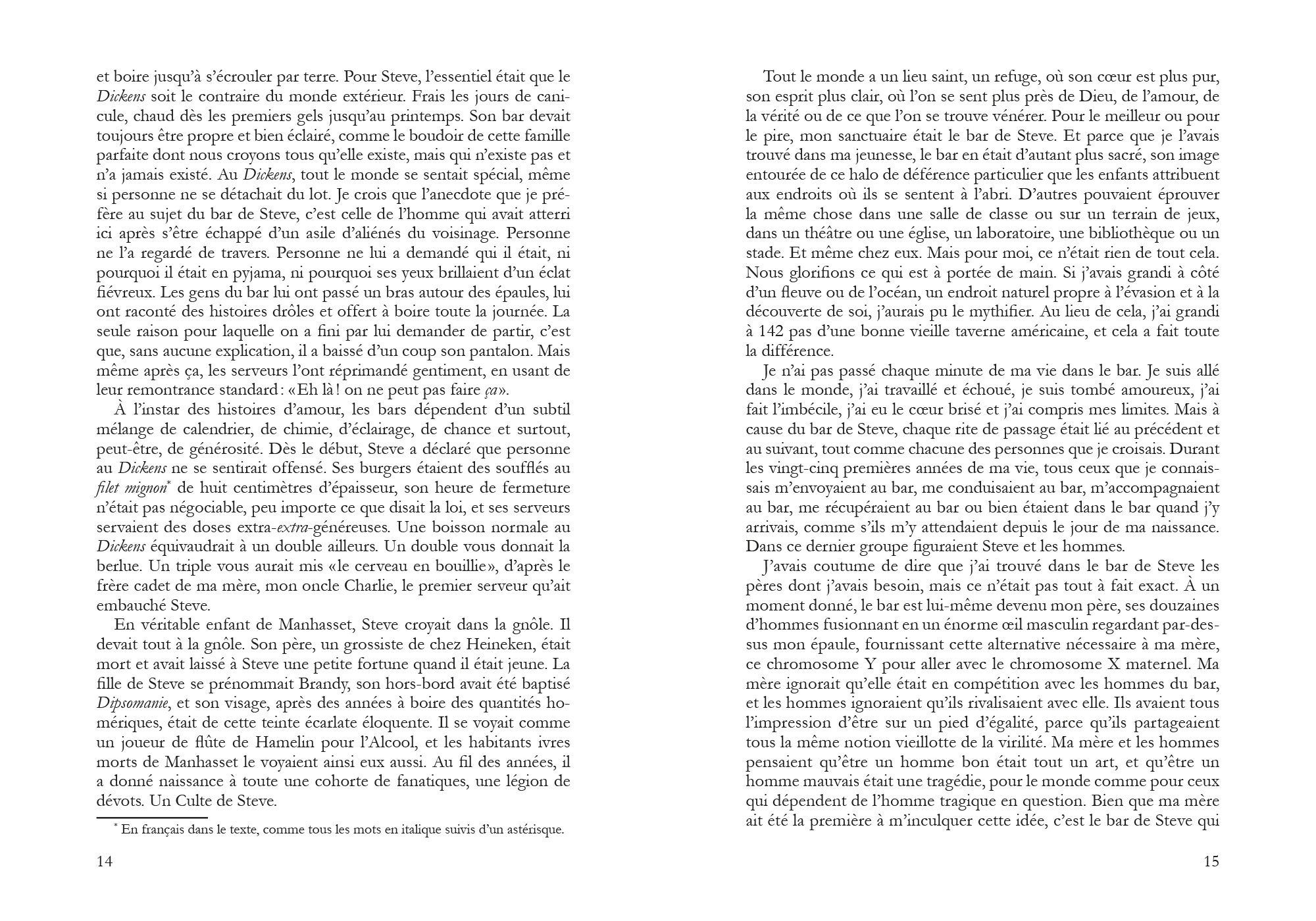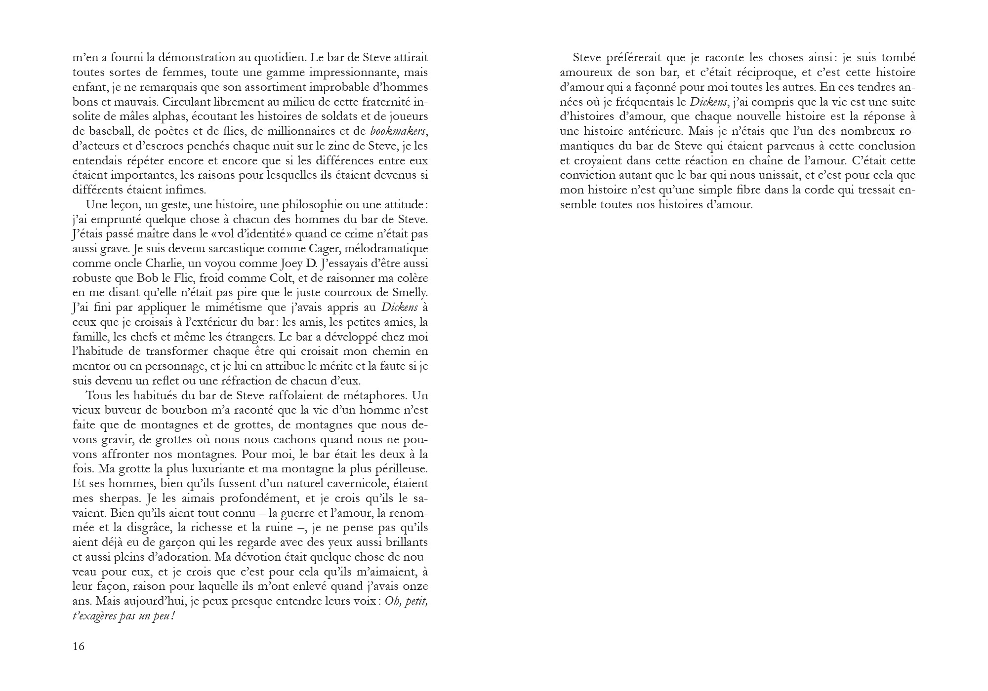 De la maison délabrée de son grand-père aux tours sacrées de Yale en passant par l’aridité de l’Arizona, de ses petits boulots à son emploi au New York Times, dans la grande machinerie journalistique, à maintes reprises, le bar a offert un abri contre l’échec, le rejet, le chagrin d’amour, contre une réalité ici dépeinte avec un recul à la fois ironique, immensément touchant, poignant.